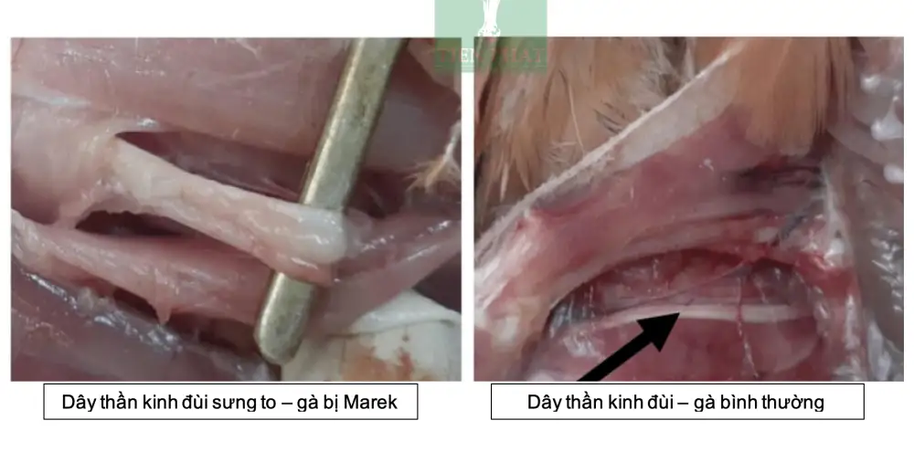 Tổn thương thần kinh xảy ra khi virus xâm nhập vào các dây thần kinh ngoại biên, gây viêm, phù và thoái hóa bao myelin. Quá trình sinh bệnh phức tạp này giải thích cho sự đa dạng về biểu hiện lâm sàng của bệnh Marek.