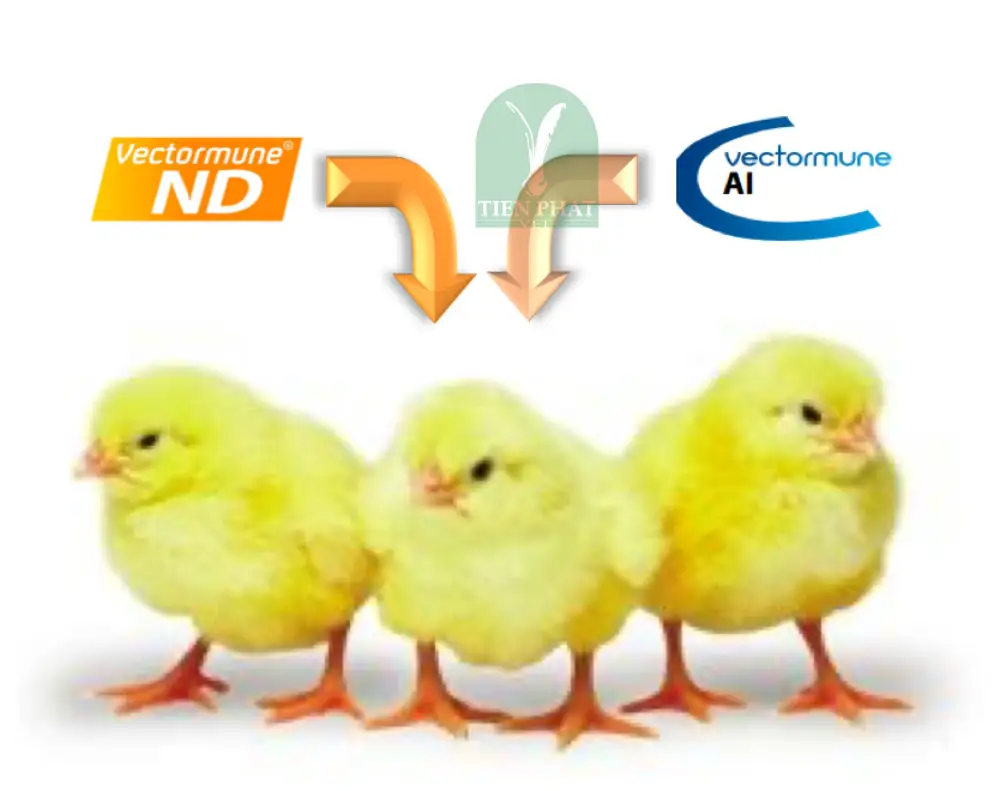 Đặc biệt, có thể kết hợp Vectormune ND + Vectormune AI nhằm tăng khả năng bảo hộ nhiều bệnh trong 1 lần tiêm. Tạo sự bảo hộ kéo dài, giảm công chích nhiều lần và giảm stress cho gà.